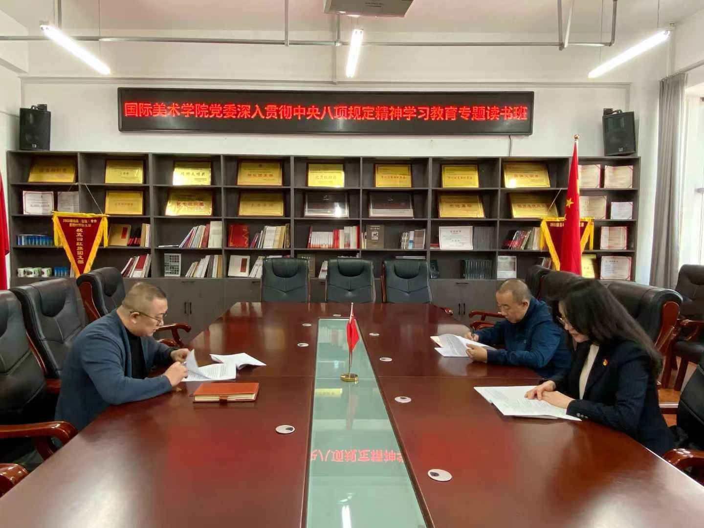 (田传芳/文)4月8日至9日,按照学校党委工作部署,国际美术学院党委召开理论学习中心组暨深入贯彻中央八项规定精神学习教育专题读书班(扩大)会议,党委书记李卓主持读书班,学院领导班子其他成员、三办和各系(部)负责人等参加了学习。