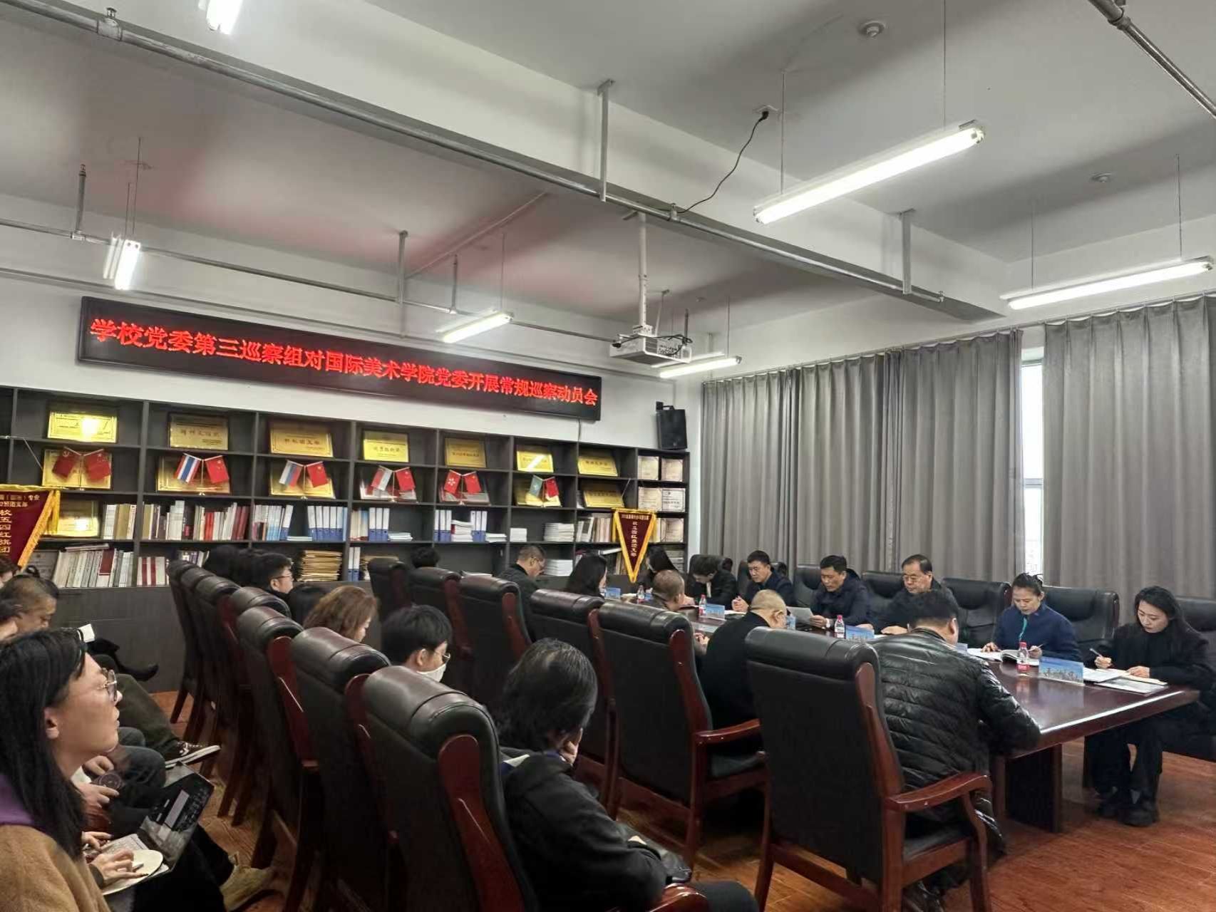 按照学校党委统一部署,10月20日下午,学校党委第三轮巡察第三巡察组巡察国际美术学院党委工作动员会在艺综楼1210举行。校党委常委、副校长、第三巡察组组长徐国峰出席会议并作动员讲话,学校党委第三巡察组成员、国际美术学院领导班子成员以及全体教职工参加会议。会议由学院党委书记李卓主持。