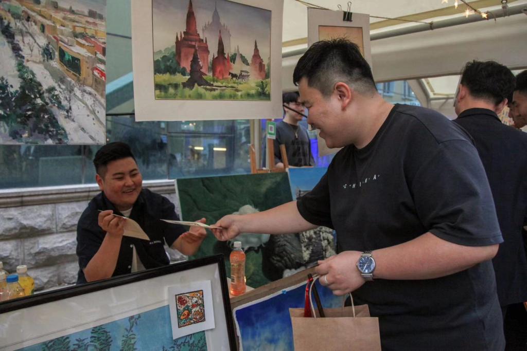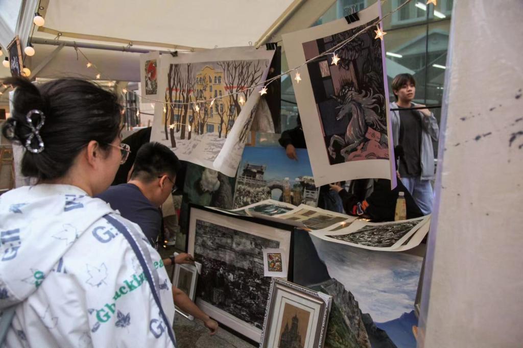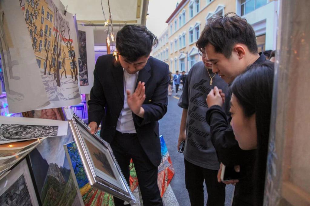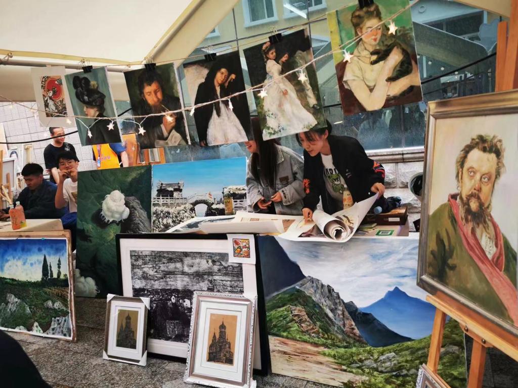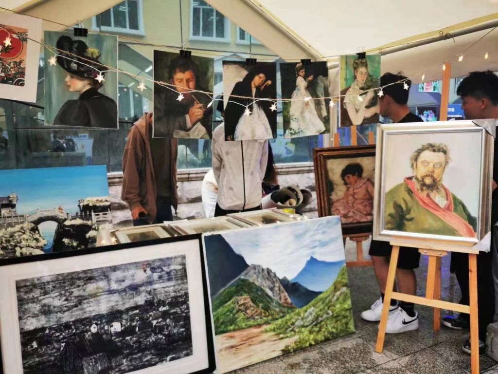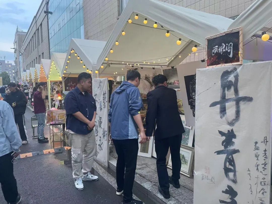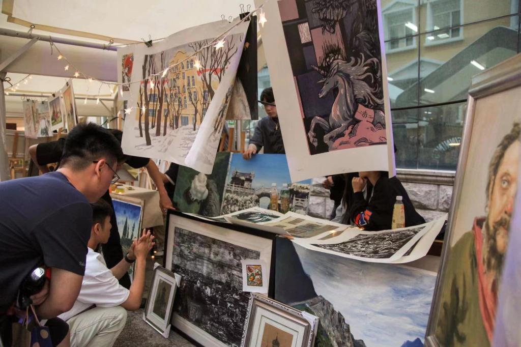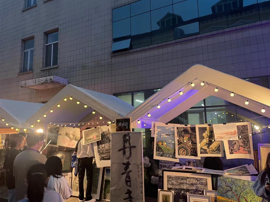 6月9日至11日,我校在江南校区创意设计产业园区前举办“创意市集”。国际美术学院积极响应校团委号召,在“创意市集”上开设摊位—画琅阁,涵盖油画、版画等文创产品,吸引众多游客前来参观购买,总计客流量达千余人,成交金额近万元。