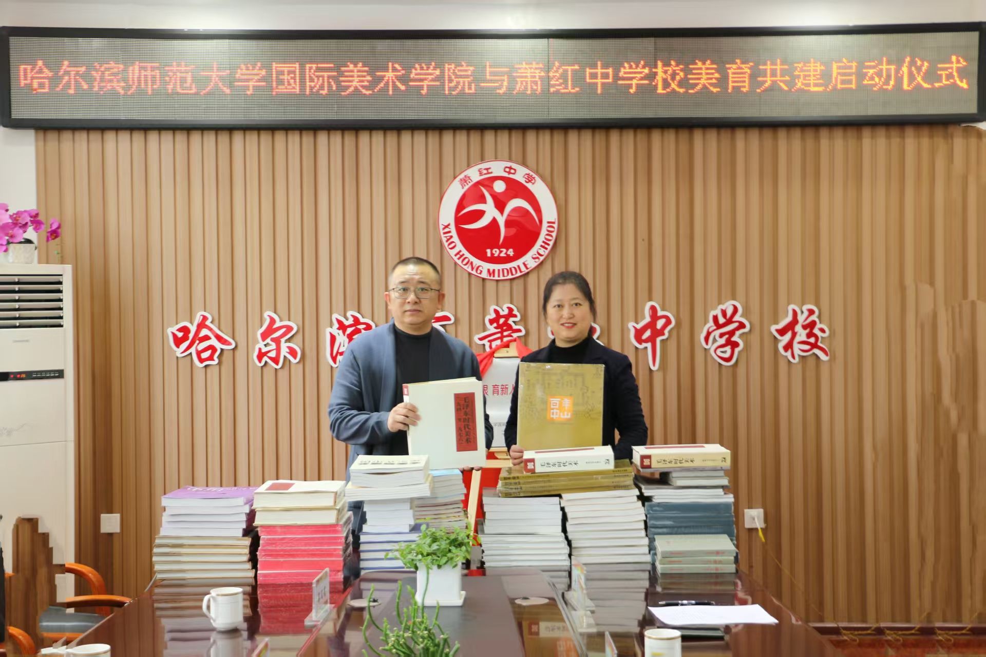 刘勇代表学院向萧红中学捐赠美术类图书。