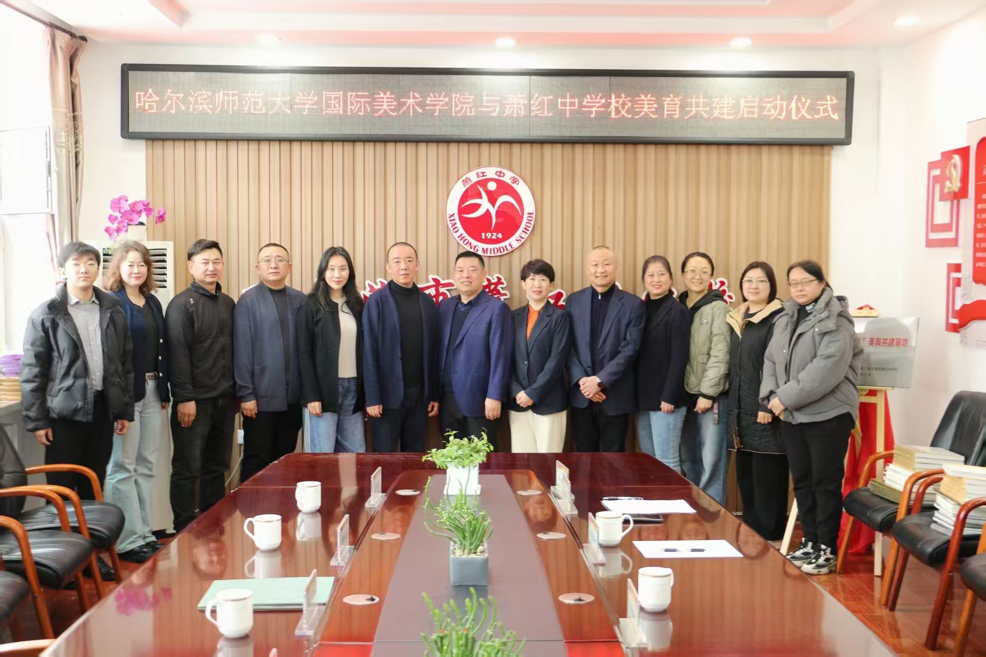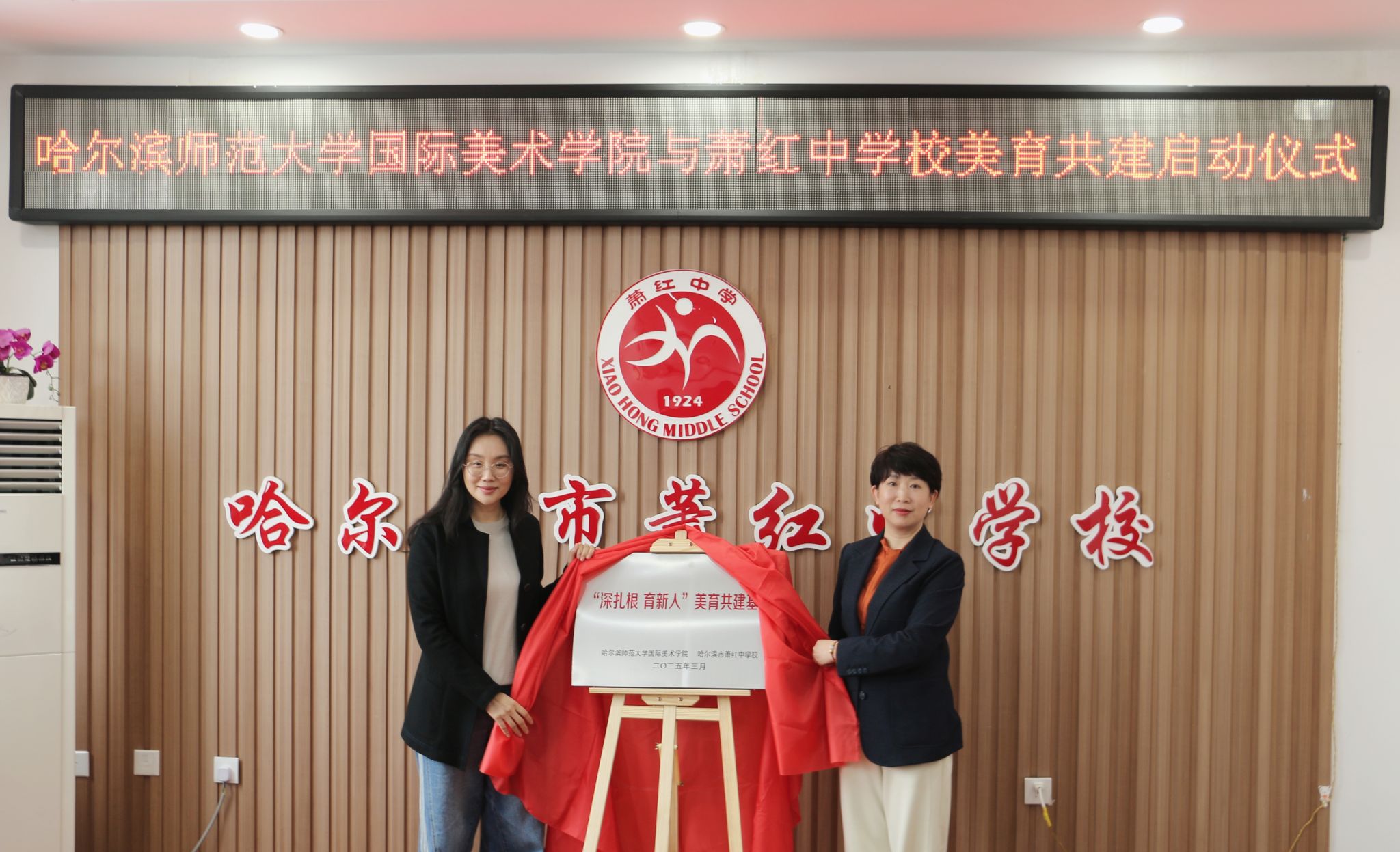 为深入贯彻落实黑龙江省全面实施学校美育浸润行动方案要求,3月27日,国际美术学院与哈尔滨萧红中学校联合开展“深扎根·育新人”美育共建活动。学院党委书记李卓、院长牟克、党委副书记刘勇,萧红中学党委书记任志莉、校长刘国权,副校长乔国华、王晶姝以及双方辅导员和教师代表出席活动。