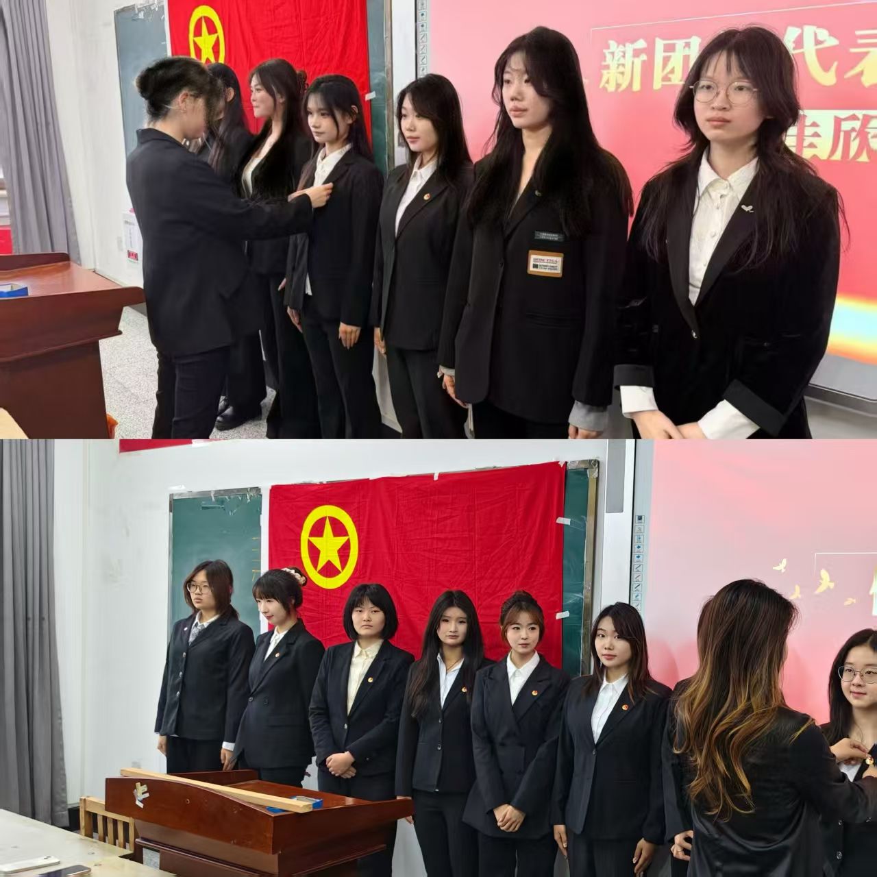 学院团委兼职副书记(学生)刘博为新团员别上闪亮的团徽,并颁发团证。徽章在胸前定格,荣光在心中生根。这意味着他们将以一个崭新的身份,去践行青春的誓言,履行时代赋予的责任。