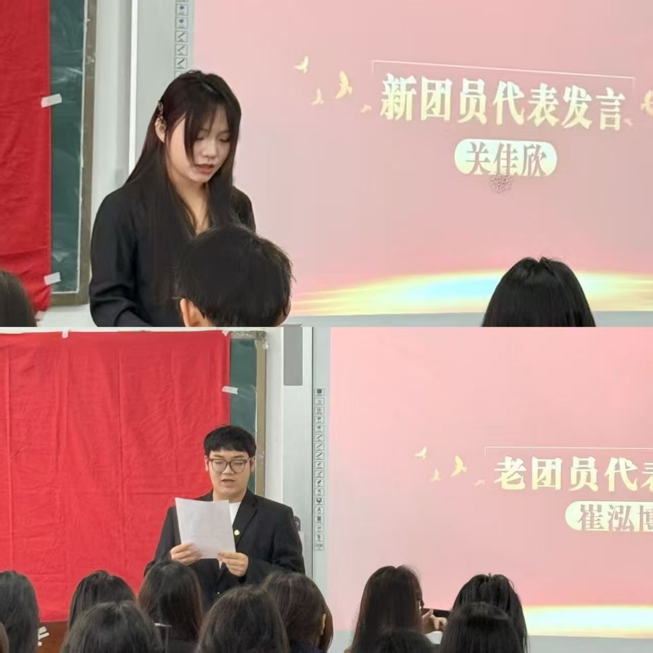 2024级老团员代表崔泓博在发言中谈到,入团是荣誉的传承,更是责任的接力,呼吁大家莫负韶华时代,让青春在为国为民的奉献中绽放绚丽光彩。2025级新团员代表关佳欣则表达了共同的心声:将从今日起,以更高标准律己求进,树立远大理想,勇于探索,将团员标准切实融入日常的学习与生活。