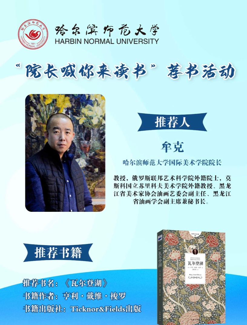 阅读筑梦,书香致远,2025年5月16日下午2点,哈尔滨师范大学“院长喊你来读书”第二期荐书活动在留学生三公寓多功能厅成功举办,国际美术学院院长牟克作为“好书推荐官”在现场与各位同学分享美国自然文学作品《瓦尔登湖》。《瓦尔登湖》是美国作家梭罗独居瓦尔登湖畔的记录,书中捕捉了四季的更迭以及最纯粹的自然景象与事件,展现了一种人与自然和谐共存的新生活模式,被誉为能深刻塑造读者人生的经典著作之一。在分享过程中,牟克以清新的视角、...